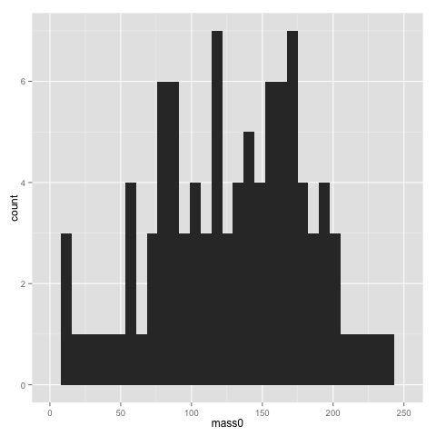 melted$time[which(melted$variable=="mass10")] <- 10 melted$time[which(melted$variable=="mass25")] <- 25 melted$time[which(melted$variable=="mass50")] <- 50