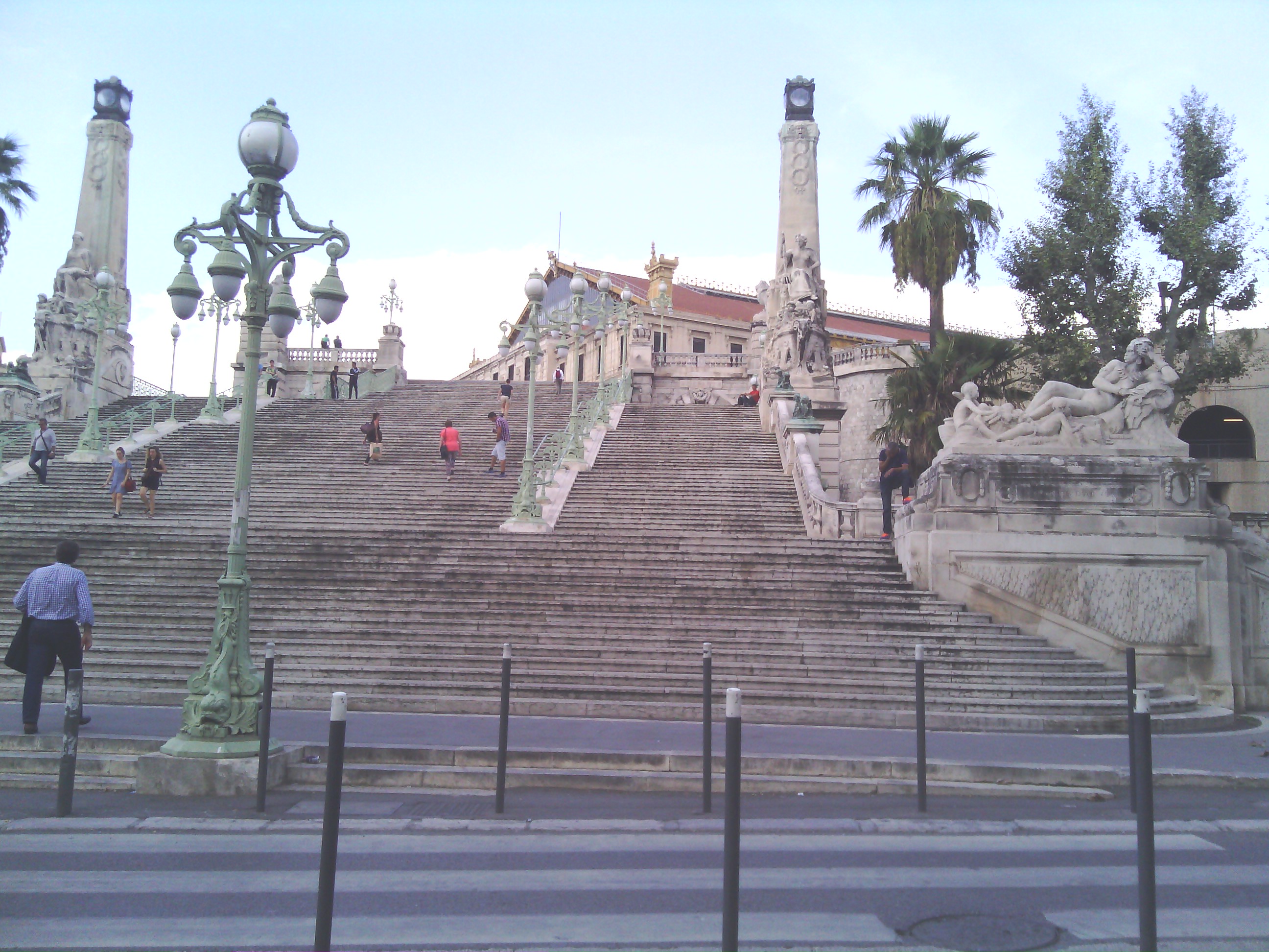 If you saw a bearded man carrying a pink bag scrambling towards Gare de Marseille Saint-Charles (pictured below; an incredibly beautiful train station) while eating boiled potatoes from a plastic bag, you may have witnessed my stylish departure from Marseille. This was during the Air France strike, and I had just learned that I could catch a train to Nice and go from there. In a moment of brilliance or cheapness, I also decided to spend the night at the airport Nice Côte d’Azur.