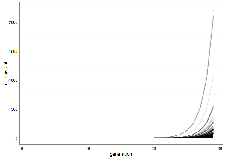 resistant_plot <- qplot(x = generation, y = n_resistant, group = culture,