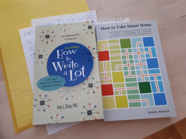 Books about writing can reveal something about how they were written, and both these books do. In ”How to write a lot”, Silvia talks about his own writing schedule and even includes a photo of his workspace to illustrate the point that you don’t need fancy equipment. In ”How to take smart notes”, Ahrens gives an example of how this note taking methods led him to an idea: