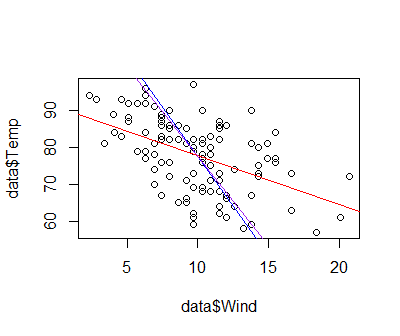 model.rq <- rq(Temp ~ Wind, airquality, tau=c(0.25, 0.5, 0.75))