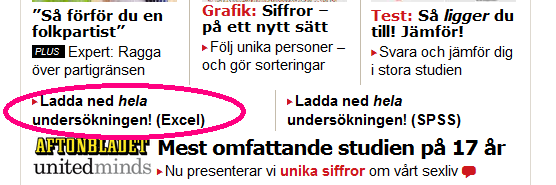 2. Det är värt att upprepa hur coolt det är att Aftonbladet och United minds släppt data från undersökningen! Den här skärmbilden visar min favoritgrej med undersökningen (min inringning):